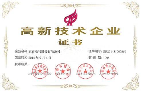 高新技术企业证书